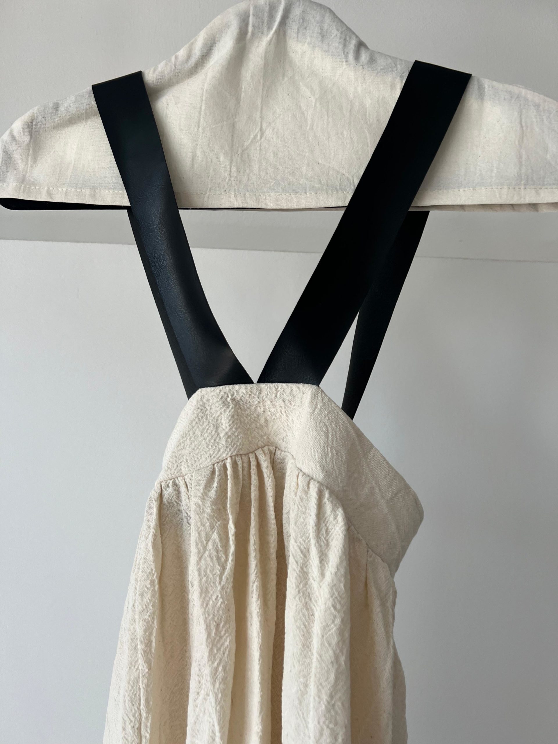 Largo 0.85 (Con breteles incluidos) ancho : arranca en 0.30 en la siZa y se va ensanchando hasta 0.70